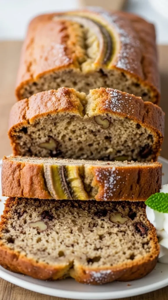 This recipe combines two undefeated classics banana bread and chocolate chips and somehow makes both better. The banana keeps everything moist while the chocolate melts into little pockets of joy. Every slice feels indulgent without being too sweet. It’s dessert, snack, and emotional support food all in one loaf.