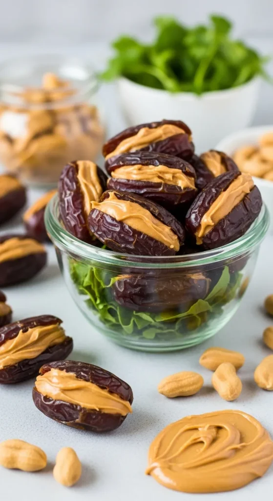 2. Peanut Butter Stuffed Dates (Nature’s Candy, No Lies)