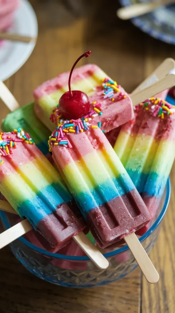 Rainbow Popsicles are one of the best healthy summer desserts for kids. They are bright, colorful, and made with fruit juice or yogurt, which makes them refreshing and fun. Kids enjoy the rainbow layers and love helping pour each color into the molds. These popsicles are great for hot days and are much better than store-bought ice pops. They are also a smart choice for parents who want easy frozen desserts that look exciting and taste sweet without too much sugar.