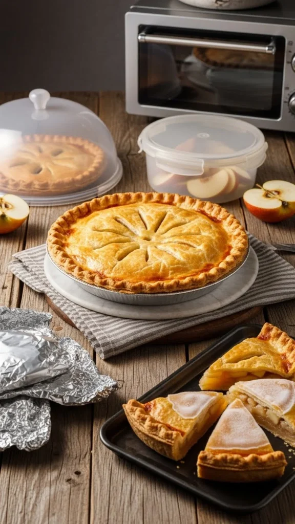 - Room temperature: Cover loosely with foil or a pie dome. Lasts 2–3 days.