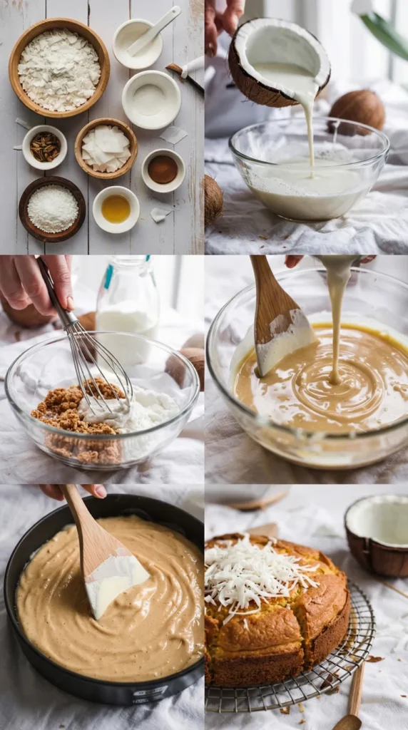 Flour, sugar, shredded coconut, baking powder, baking soda, and salt. Whisk it like you mean it—no flour clumps allowed. - Add the wet ingredients directly to the bowl.